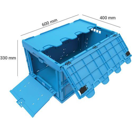 Équipé de charnières renforcées et d'un rebord sécurisé pour le gerbage.