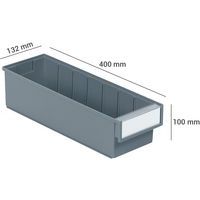 Bacs d’étagère conçus pour s'adapter à toutes les tablettes, armoires, supports rotatifs et postes de travail industriels standard. Notre gamme de produits comprend 11 bacs de différentes tailles. Disponibles dans les profondeurs suivantes : 3, 4, 5 et 6 mm. Chaque tiroir porte une étiquette et un couvercle de protection. Matériaux: PS = polystyrène transparent : température d'utilisation de -4 °C à +55 °C. PP = polypropylène coloré : température d'utilisation de -2 °C à +75 °C. Inaltérable aux huiles et à la plupart des acides et solvants.