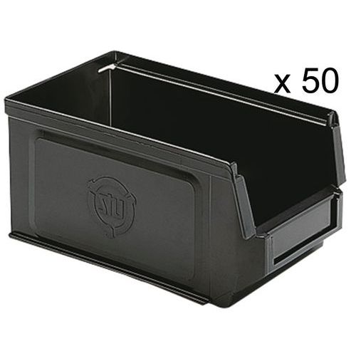 Bacs à bec Silafix en matière conductrice disponibles dans différentes dimensions et différentes couleurs, pouvant recevoir un couvercle, un film de protection et une étiquette en papier selon les versions.