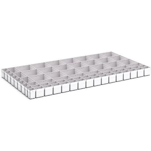 | Intitulé du produit | Bacs Rangement Cubio EKK37100 71 Compartiments, Largeur: 1300 mm, Profondeur: 750 mm, Hauteur: 100 mm |