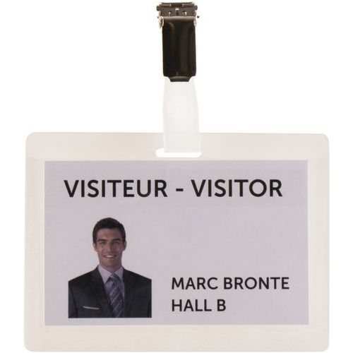 | Intitulé du produit | Badge à plastifier à froid à clip horizontal, Coloris: Transparent, Longueur: 104 mm, Largeur: 74 mm |