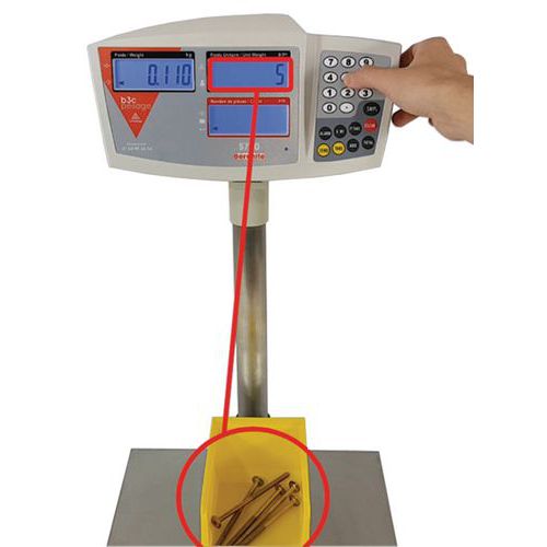 - Avec 3 afficheurs séparés (Poids brut/net, Poids de référence et Nombre total de pièces).