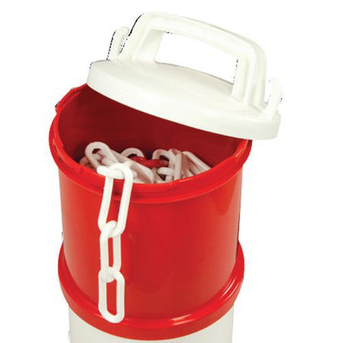 Balise standard composée de : 1 socle, 4 éléments (2 coloris), d'1 couvercle et de 5 mètres de chaîne. Livrée avec : - Vis de montage du socle/segment, - Barres de montage/démontage des segments.
