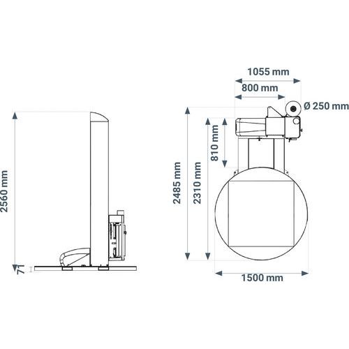 | Intitulé du produit | Banderoleuse plateau en U, Charge maxi: 1650 kg, Bobine hauteur maxi: 2200 mm, Longueur hors tout: 2315 mm |