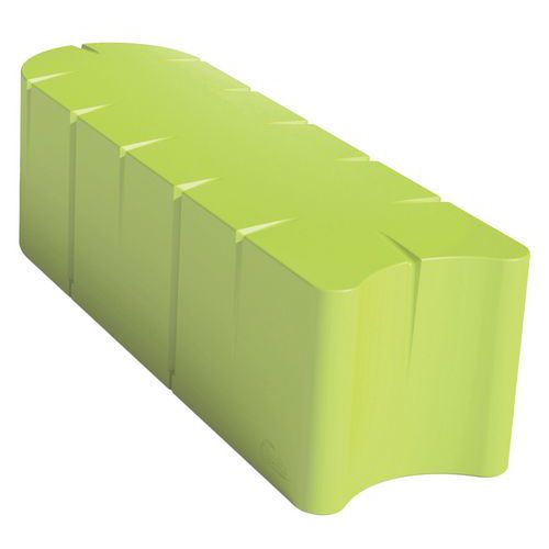 En polyéthylène rotomoulé teinté dans la masse, épaisseur moyenne 7 mm. Implantation à l'intérieur ou à l'extérieur car le polyéthylène utilisé résiste aux intempéries et aux UV (température : -30°C/+ 60° C). Entretien : nettoyeur haute pression (1 fois/an). Possibilité d'ajouter le pouf ovale CONNEXIO et/ou le pouf rond CONNEXIO. 10 coloris standards. Module à lester avec du sable (non inclus) ou à fixer au sol avec des tiges filetées RGM8, L : 0,11 m (4 zones d'ancrage) en option. Autres RAL standards sur demande.