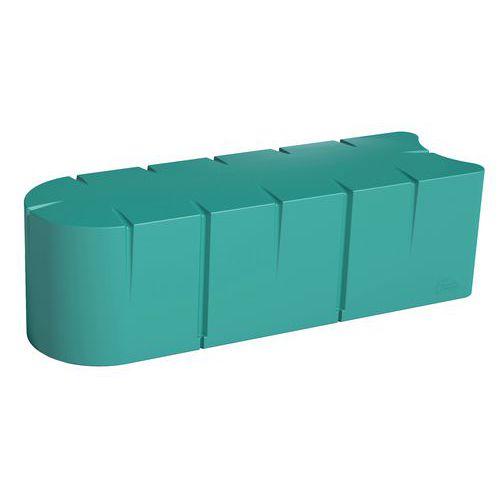 En polyéthylène rotomoulé teinté dans la masse, épaisseur moyenne 7 mm. Implantation à l'intérieur ou à l'extérieur car le polyéthylène utilisé résiste aux intempéries et aux UV (température : -30°C/+ 60° C). Entretien : nettoyeur haute pression (1 fois/an). Possibilité d'ajouter le pouf ovale CONNEXIO et/ou le pouf rond CONNEXIO. 10 coloris standards. Module à lester avec du sable (non inclus) ou à fixer au sol avec des tiges filetées RGM8, L : 0,11 m (4 zones d'ancrage) en option. Autres RAL standards sur demande. Fabriqué en UE Garantie client : 5 ans