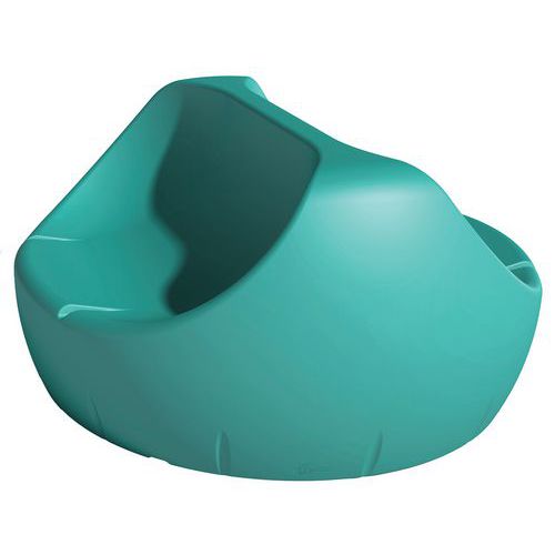 En polyéthylène rotomoulé teinté dans la masse, épaisseur moyenne 7 mm. Implantation à l'intérieur ou à l'extérieur car le polyéthylène utilisé résiste aux intempéries et aux UV (température : -30°C/+ 60° C). Entretien : nettoyeur haute pression (1 fois/an). 10 coloris standards. Module à lester avec du sable (non inclus) ou à fixer au sol avec des platines de fixation (4 zones d'ancrage) + tiges filetées RGM8, L : 0,11 m en option. Autres RAL standards sur demande.