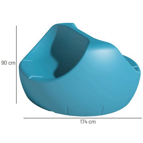 En polyéthylène rotomoulé teinté dans la masse, épaisseur moyenne 7 mm. Implantation à l'intérieur ou à l'extérieur car le polyéthylène utilisé résiste aux intempéries et aux UV (température : -30°C/+ 60° C). Entretien : nettoyeur haute pression (1 fois/an). 10 coloris standards. Module à lester avec du sable (non inclus) ou à fixer au sol avec des platines de fixation (4 zones d'ancrage) + tiges filetées RGM8, L : 0,11 m en option. Autres RAL standards sur demande. Fabriqué en UE Garantie client : 5 ans