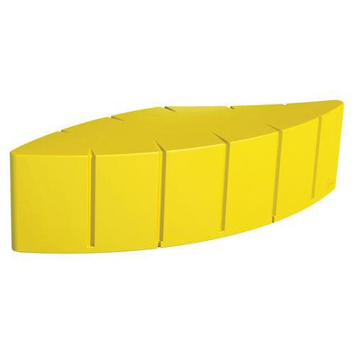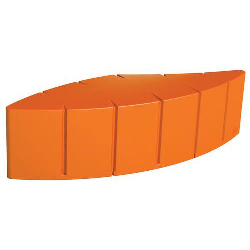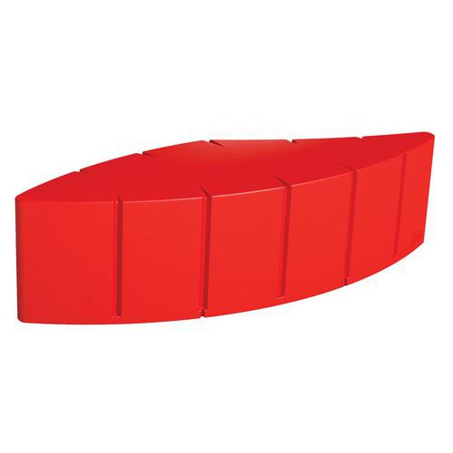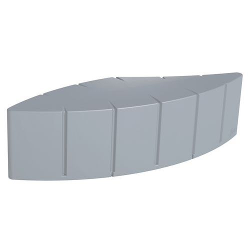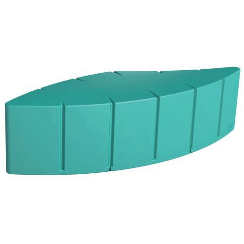 En polyéthylène rotomoulé teinté dans la masse, épaisseur moyenne 7 mm. Implantation à l'intérieur ou à l'extérieur car le polyéthylène utilisé résiste aux intempéries et aux UV (température : -30°C/+ 60° C). Entretien : nettoyeur haute pression (1 fois/an). 10 coloris standards. Module à lester avec du sable (non inclus) ou à fixer au sol avec des tiges filetées RGM8, L : 0,11 m (4 zones d'ancrage) en option. Autres RAL standards sur demande. Fabriqué en UE Garantie client : 5 ans