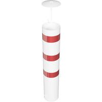 - La borne stationnaire à bétonner capuchon à visser - Blanc/Rouge de Schake combine visibilité et sécurité grâce à son design avec bandes réfléchissantes.