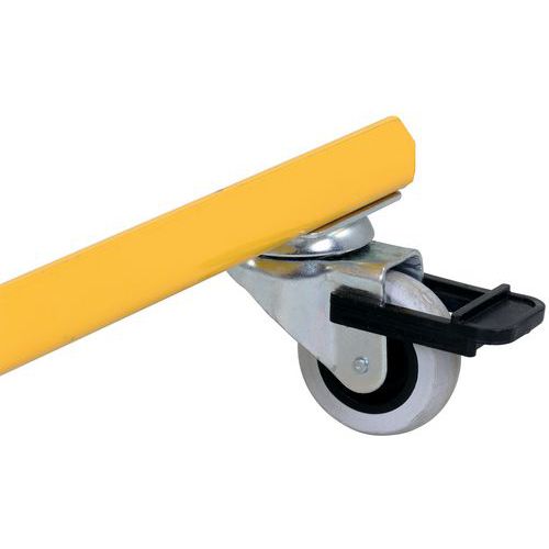 Revêtue par poudrage. Avec écrous autobloquants dans la zone extensible. Avec marquage d'avertissement réfléchissant des deux côtés. Très facile à utiliser. Frein sur roulette compris.