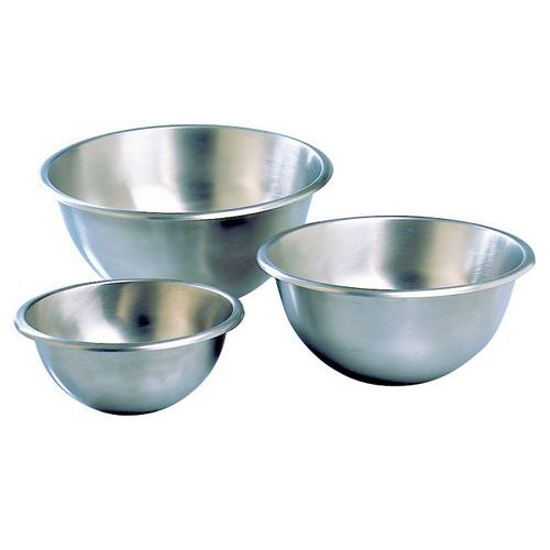 Bassine demi-ronde (Ou cul de poule). Acier inoxydable Bassines inox Bord ouvert demi-rond, facile à nettoyer. Fabriqué en UE