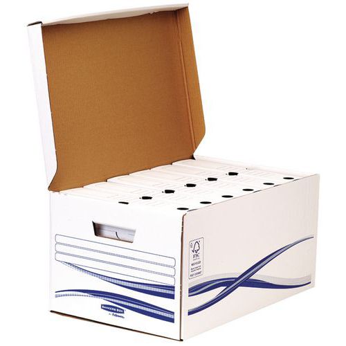 | Intitulé du produit | Conteneur pour boîtes d'archives Bankers Box Basic A4+, Dos largeur: 35.6 cm, Matériau: Carton |