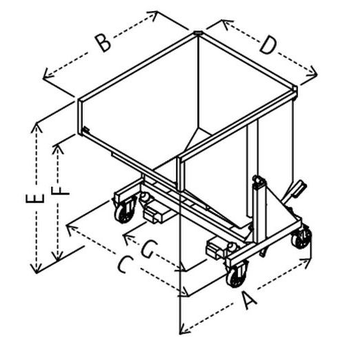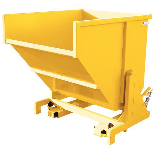 Déclenchement automatique du basculement par contact et basculement manuel par levier. Chaîne de sécurité évitant tout déclenchement intempestif lors des déplacements. Réenclenchement facilité par appui de l’avant sur collecteur. Construction en tôle pliée 3/1ème. Soudures extérieures continues et intérieures discontinues. Garantie client : 3 ans CE Charge maxi (kg) : 1800