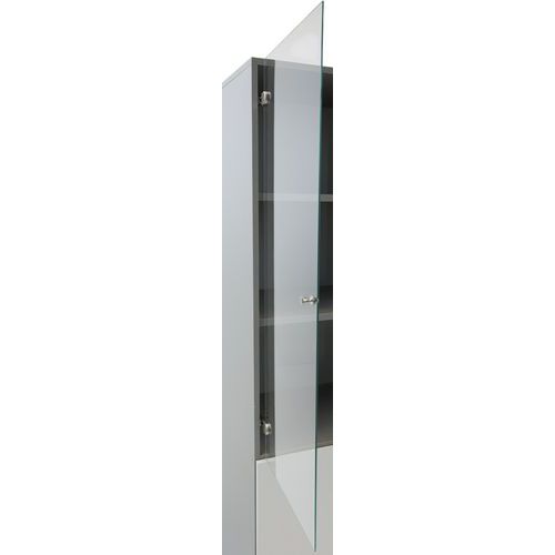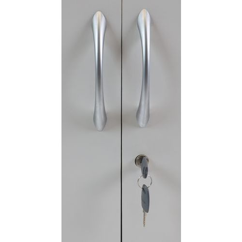 Bibliothèque Quatuor avec 2 portes vitrées en partie supérieure et 2 portes pleines en partie inférieure Structure panneau de particules 3 tablettes dont 1 réglable et 2 fixes pour la partie haute et 1 tablette réglable pour la partie basse Poignées métal coloris alu sur les 2 portes basses Serrure à clé sur portes en partie basse uniquement (2 clés livrées). Poids supporté par tablette : 35 kg répartis. Vérin de réglage, réglable de l'intérieur. Largueur utile 76 cm. Livrée prêt à monter avec notice.