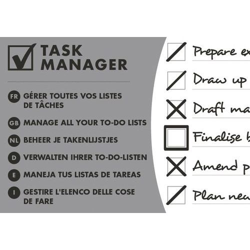 | Intitulé du produit | Bloc note Task Manager Oxford 125X200 140P 90G LIG, Grammage: 90 g/m², Réglure: Lignes, Nb de pages: 140 |