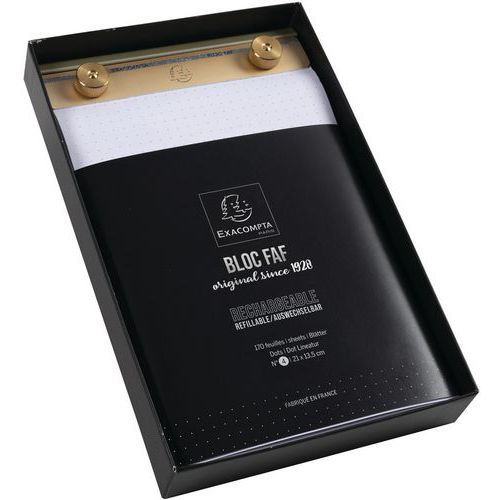 | Intitulé du produit | Bloc-notes FAF, Grammage: 70 g/m², Réglure: Pointillés, Nb de pages: 340, Type de reliure: Dos rigide |