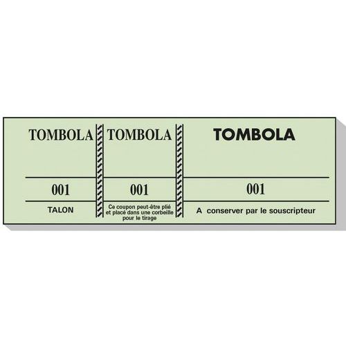 | Intitulé du produit | Bloc tombola 100 feuillets numérotés de 3 volets, Modèle: Bloc tombola, Produit recyclable: Oui - 100 % |
