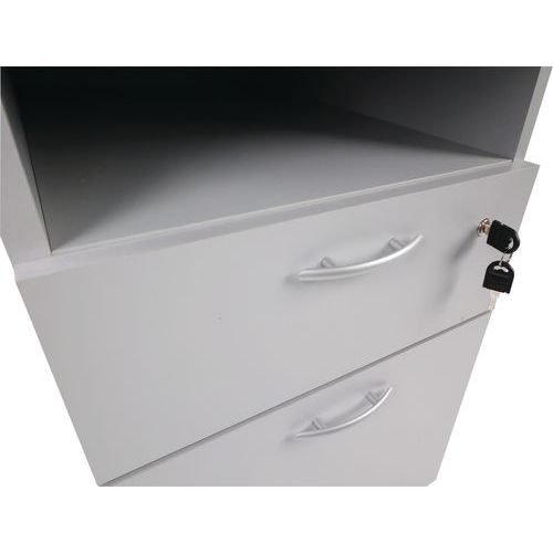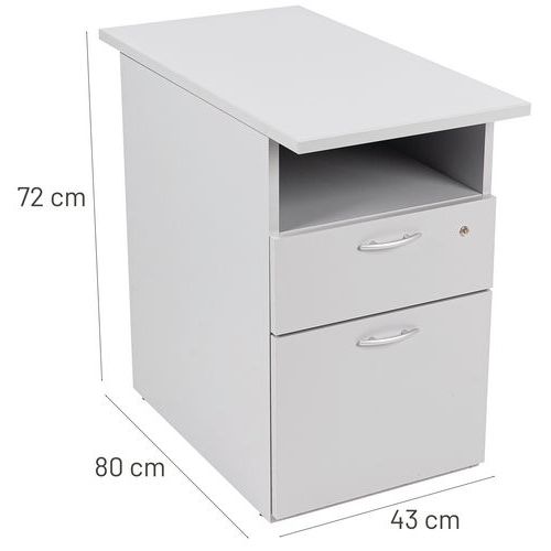 Caisson à hauteur de bureau avec poignées en aluminium. Muni d'une serrure sur un seul tiroir. Espace de rangement supplémentaire sous la tablette supérieure. Vos documents toujours à portée de main
