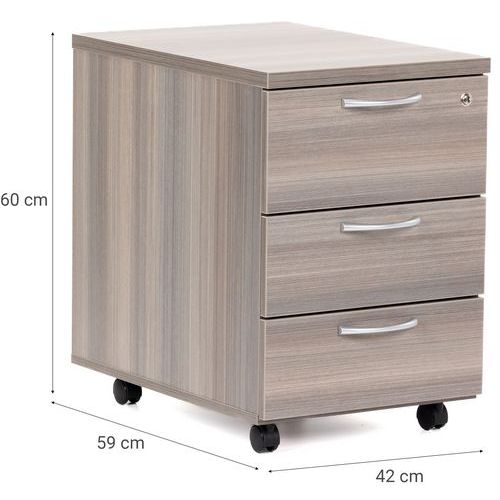 | Intitulé du produit | Caisson mobile, Matériau: Mélaminé, Hauteur hors tout: 60 cm, Nb de tiroirs: 3, Largeur hors tout: 42 cm |