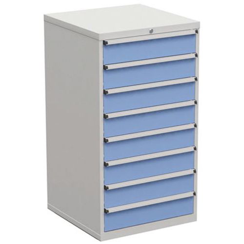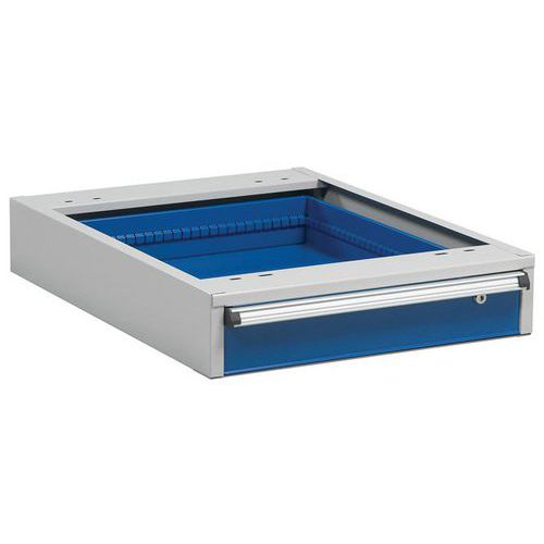 Ces blocs-tiroirs permettent d’optimiser le rangement et de conserver vos éléments bien en place. Un système de fermeture et d'ouverture sécurisé permet d’ouvrir un seul tiroir à la fois. Dès qu’un tiroir est ouvert, le système de verrouillage interdit l’ouverture de tout autre tiroir. Vous avez le choix entre trois hauteurs, et pouvez augmenter la hauteur ou la largeur grâce à différents aménagements en combinaisons des blocs tiroirs. Les blocs-tiroirs servent également de pieds pour tables de travail Workshop et les tiroirs se montent facilement sous une table de travail. Le bloc-tiroirs 55/66 comprend des roulettes en option, idéal pour les postes de travail mobiles. Le bloc-tiroirs à roulettes est livré avec un tapis en caoutchouc qui empêche les éléments posés sur le bloc tiroirs de glisser. Le tiroir de 50 mm de hauteur s’ouvre entièrement et offre une capacité de charge de 40 kg. Les autres tiroirs s’ouvrent à 85 % et ont une capacité de 80 kg. Tiroirs à ouverture unique sécuris Charge maxi (kg) : 675