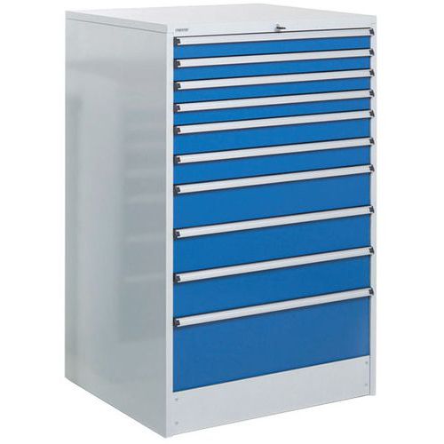 Ces blocs-tiroirs permettent d’optimiser le rangement et de conserver vos éléments bien en place. Un système de fermeture et d'ouverture sécurisé permet d’ouvrir un seul tiroir à la fois. Dès qu’un tiroir est ouvert, le système de verrouillage interdit l’ouverture de tout autre tiroir. Vous avez le choix entre trois hauteurs, et pouvez augmenter la hauteur ou la largeur grâce à différents aménagements en combinaisons des blocs tiroirs. Les blocs-tiroirs servent également de pieds pour tables de travail Workshop et les tiroirs se montent facilement sous une table de travail. Le bloc-tiroirs 55/66 comprend des roulettes en option, idéal pour les postes de travail mobiles. Le bloc-tiroirs à roulettes est livré avec un tapis en caoutchouc qui empêche les éléments posés sur le bloc tiroirs de glisser. Le tiroir de 50 mm de hauteur s’ouvre entièrement et offre une capacité de charge de 40 kg. Les autres tiroirs s’ouvrent à 85 % et ont une capacité de 80 kg. Tiroirs à ouverture unique sécuris Charge maxi (kg) : 675 kg