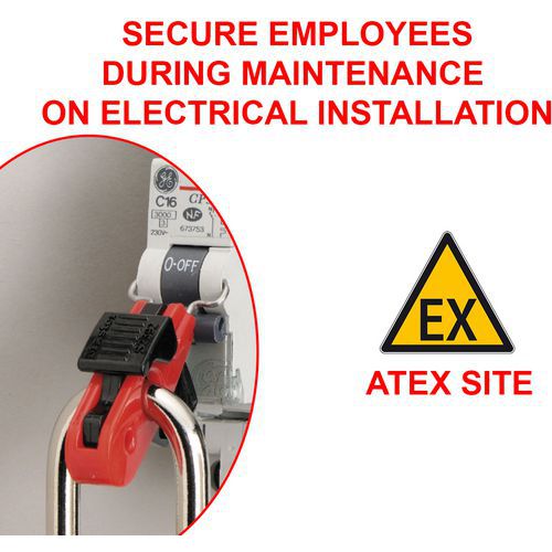 Le dispositif breveté s'adapte aux disjoncteurs munis de trous de consignation à l'extérieur de l'interrupteur et d'ouvertures allant jusqu'à 13 mm entre les trous.