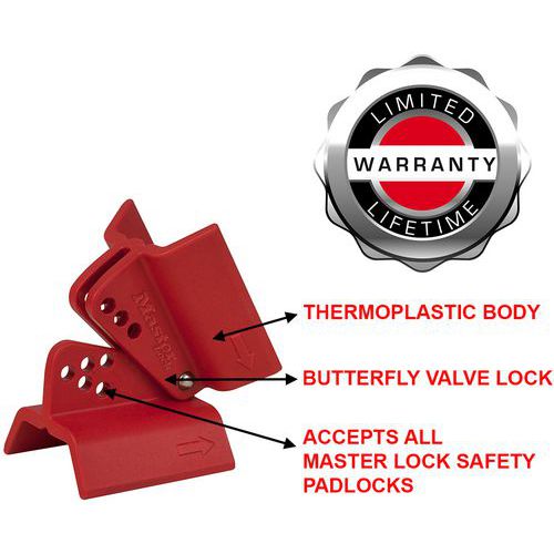 Le dispositif de consignation de vannes papillon Master Lock nº S3920 verrouille n'importe quelle vanne papillon en quelques secondes à peine grâce à un câble de verrouillage ajustable S806.