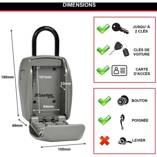 - Boîte à clé à combinaison avec construction en alliage de zinc avec double verrouillage de la porte pour une meilleure résistance aux attaques.