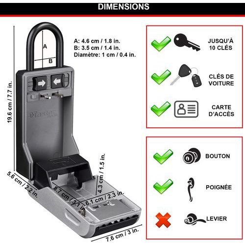 - Boîte à clés à combinaison format L à Large capacité de rangement.