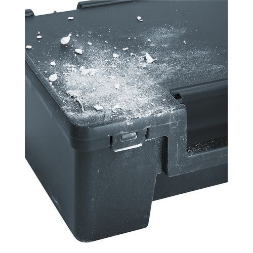 Étanche aux projections d’eau et à la poussière. Boîte à outils empilable. Large poignée de transport. Scellable et cadenassable pour la sécurité de vos produits. Adapté aux palettes norme Europe. Charge maxi (kg) : 35
