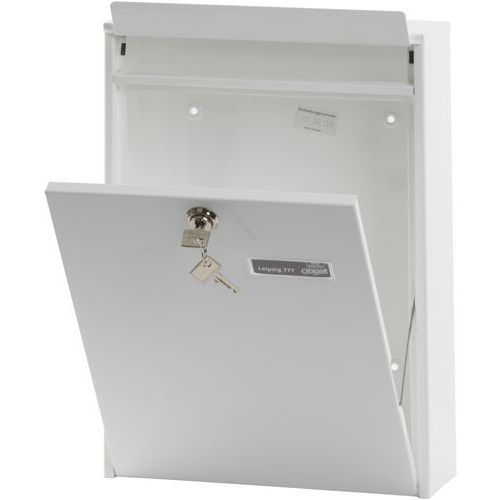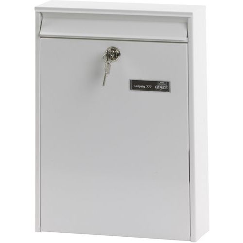| Intitulé du produit | Boîte aux lettres Leipzig, Modèle: Vertical, Coloris: Blanc, Largeur: 28.4 cm, Profondeur: 10.5 cm |