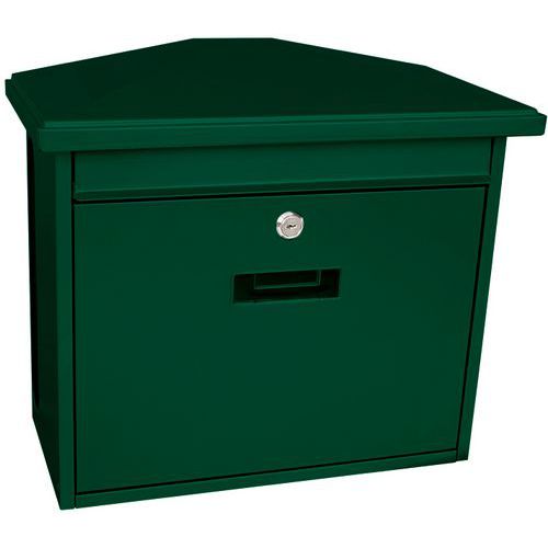 - Boîte aux lettres murale en acier galvanisé thermolaqué, équipée d'une serrure à cylindre et d'un support pour petite plaque signalitique.