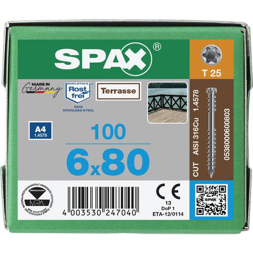 Boite de 100 vis pour terrasse à tête cylindrique TX Ø 6 mm - Spax