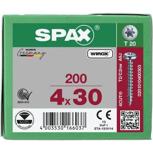 Boite de 200 vis universelles à tête ronde TX Ø 4 à 5 mm - Spax