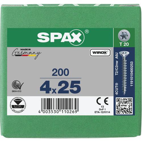 Boite de 200 vis universelles T-Star Plus à tête fraisée TX Ø - Spax