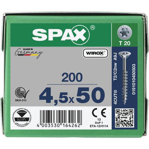 Boite de 200 vis universelles T-Star Plus à tête fraisée TX Ø - Spax