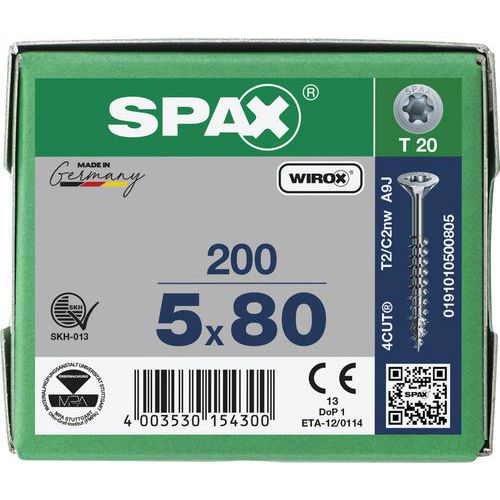 Boite de 200 vis universelles T-Star Plus à tête fraisée TX Ø - Spax