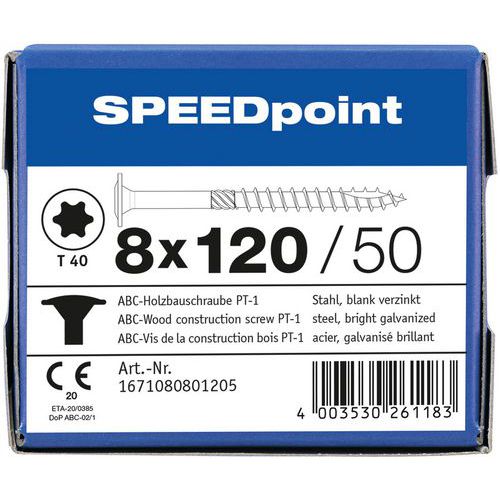 Boite de 50 vis tête disque à bois TX Ø 8 mm - SpeedPoint