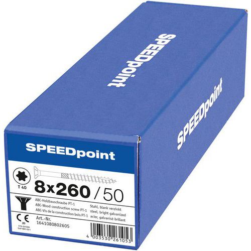 Boite de 50 vis tête fraisée à bois TX Ø 8 mm - SpeedPoint