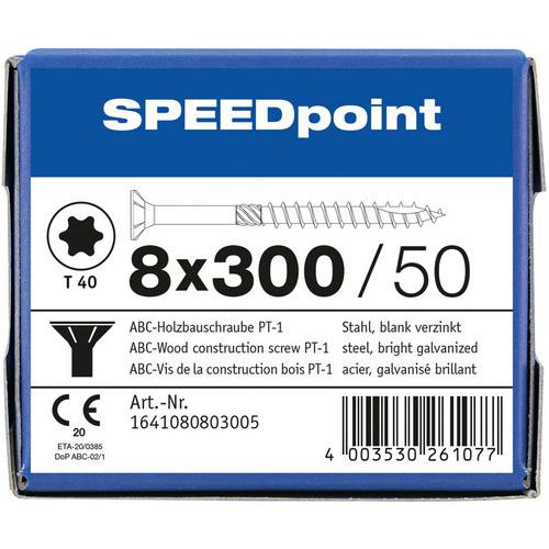 Boite de 50 vis tête fraisée à bois TX Ø 8 mm - SpeedPoint