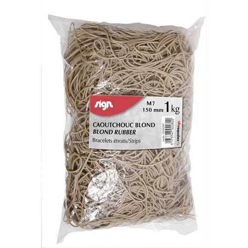 Boite de bracelet caoutchouc blond 1kg, Longueur: 150 mm, Épaisseur: 1.5 mm, Poids: 1 kg