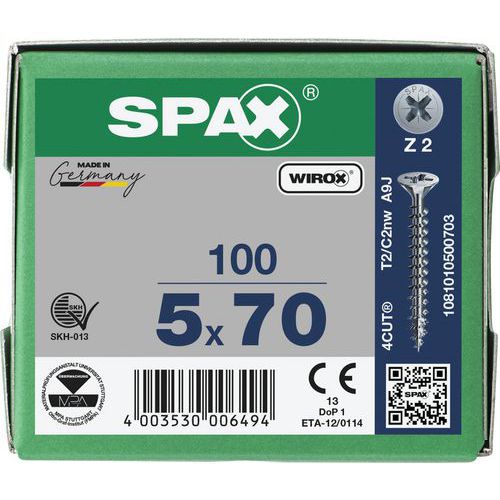 Boite de vis universelles à tête fraisée PZ Ø 3 à 5 mm - Spax