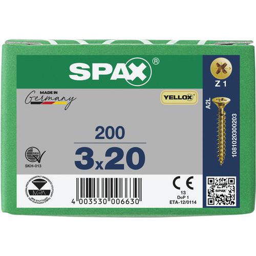 Boite de vis universelles Yellox à tête fraisée PZ Ø 3 à 5 mm - Spax