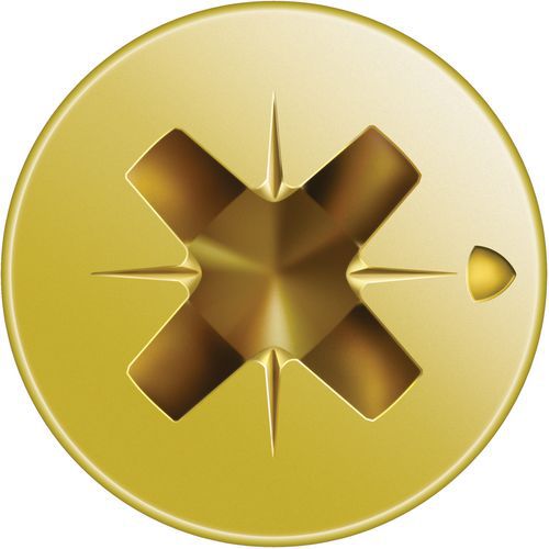 La tête fraisée se fraye un chemin dans le bois avec sa partie inférieure polygonale et peut donc être enfoncée sans préperçage du trou. La forme carrée de la pointe repousse les fibres du bois lors du vissage et crée un espace pour le diamètre du corps de la vis. L’empreinte cruciforme Z augmente la stabilité latérale de l’embout et réduit l’effet de ripage. Le filetage total s’étend sur toute la longueur de la vis. Protection contre la corrosion.