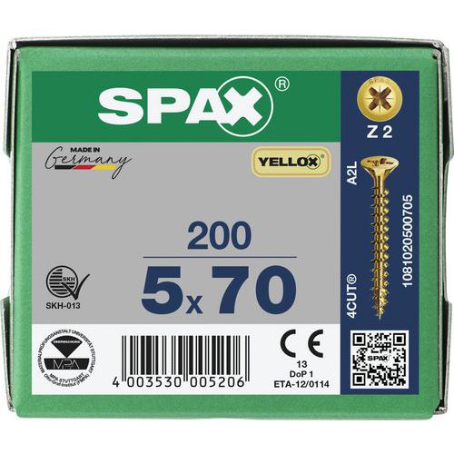 Boite de vis universelles Yellox à tête fraisée PZ Ø 3 à 5 mm - Spax