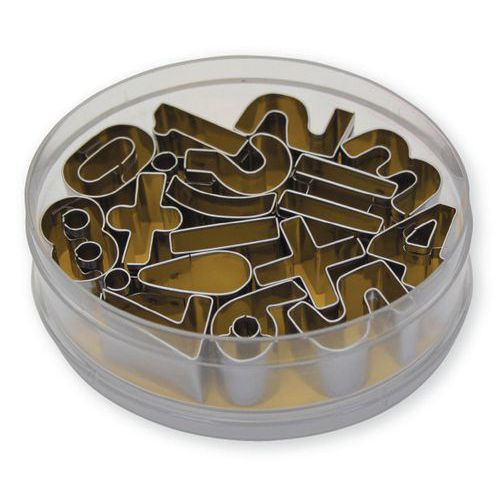 | Intitulé du produit | Boîte découpoirs chiffres + divers_Matfer, Hauteur: 2.7 cm, Matériau: Inox, Emballage recyclable: Oui - 100 % |