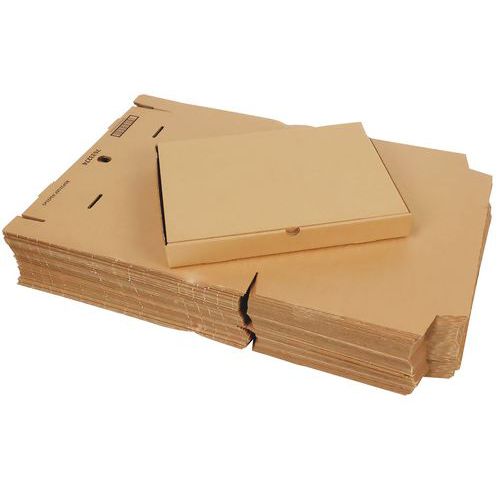 Solide boîte d'expédition en carton kraft havane. Structure spécialement adaptée aux formats plats.