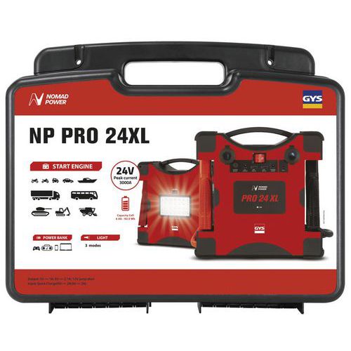 | Intitulé du produit | Booster à batterie lithium NOMAD POWER PRO 24 XL, Pour batterie tension: 24 V, Chargeur capacité maxi: 8 Ah |