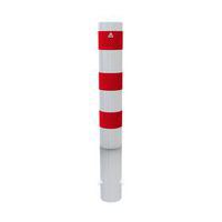 La borne d'arrêt fixe à bétonner avec capuchon soudé - Rouge/Blanc Schake est conçue pour fournir une délimitation claire et visible des zones de circulation.